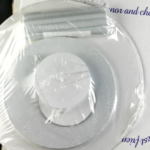 2 Tier Round Stacked assembly kit w/Delivery System Layer Sizes: 2-6" , 2- 10" Round Layers Includes Cakestand plus6" Cardboard & 12" Round White Drum