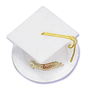 Size: 3 1/2" The graduation hats are 2 parts. The base (like a cup) and the hat (which fits over the base to form a lid).