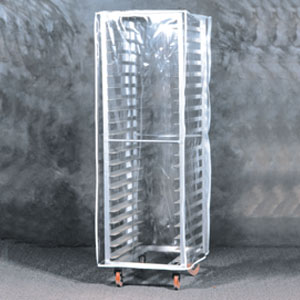 Rack covers enhance proofing, stop crusting and eliminate the need to cover trays with plastic wrap. Made of heavy duty polished clear vinyl with heavy duty zippers. Full size covers are 23" x 28" x 64". It will fit a 21" x 26" x 69" rack. Special Order