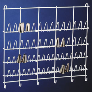 Get organized with this convenient rack for drying and storing decorating tubes and bags. Epoxy coated wire tubing rack measure 20" wide x 19" tall.