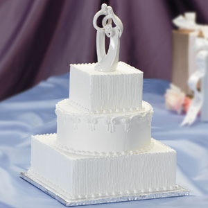 Cake Tops & Figurines Shown with cake top en-7617 Substitutions or optional items shown: Decorating comb Cakes needed: Cake configuration yields 138 servings, 120 servings without the top tier. 1 x 6 inch cake 1 x 10 inch cake 1 x 12 inch cake Information on Cake cutting guide for servings & Cake fillings and flavors? Cake decorating tips used: Tip sdt-4 for Top shell bead borders Tip sdt-10 for Bottom shell bead borders and horizontal C garlands Tip sdt-3 for Lines in between garlands and overlay lines on top of garlands Colors used: frosting - White for entire cake surface and decorations |