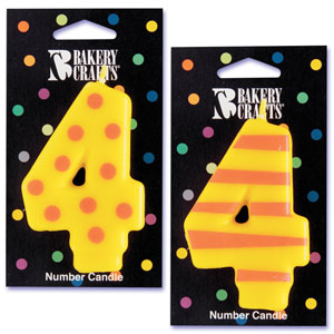 Stripes-Dots Number Candles 4 box of 12 Item: BC-CADL-4 Category: Cake Decorating > Candles |