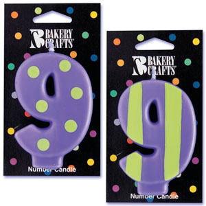 Stripes-Dots Number Candles 9 box of 12 Item: BC-CADL-9 Category: Cake Decorating > Candles |