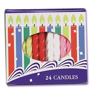 2.5 inch Spiral Candles - Assorted Colors - package of 24 1 dz packages a box Item: BC-C-750A Category: Cake Decorating > Candles |