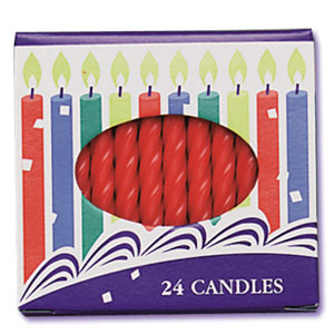 2.5 inch Spiral Candles - Red - package of 24 1 dz packages a box Item: BC-C-750R Category: Cake Decorating > Candles |