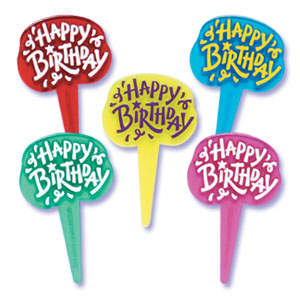 Happy Birthday Picks bag of 144 Size: 1 1/2" Item: BC-HB-2 Category: Cake Decorating > Happy Birthday |