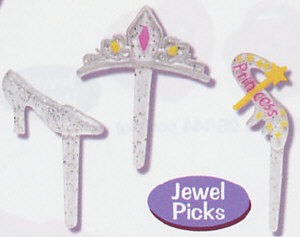 Princess Puffy Jewel Picks (glass slipper wand & tiara) bag of 144 Size: 2 3/4" Item: BC-W-12 Category: Cake Decorating > Girls |
