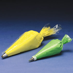 Disposable clear plastic decorating bags Popular for fast and easy decorating. These bags are moisture resistant and make color identification easy and provide a convenient storage for icing. |