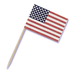 Paper American Flag Pick bag of 144 Size: 2 1/2" Item: BC-F-6 Category: Cake Decorating > Patriotic |