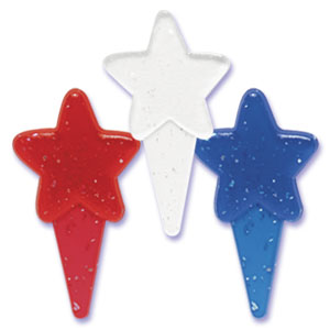 Red White Blue Transparent Glitter Star Puffy Picks bag of 144 Size: 2 1/2" Item: BC-F-35T Category: Cake Decorating > Patriotic |