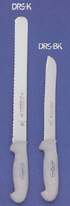 SoftGrip Bread Knife Blade Size: 8" Lenght: 13 1/2" Premium Line Dexter / Russell Sani-Safe - Black Softgrip Knives NSF listed These high quality, stainfree, razorsharp high carbon steel blades are sealed in black Softgrip polypropylene handles that bacteria, acid, moisture, fats and grease cannot penetrate. This uniquely cushioned handle and enlarged guard provide extra comfort, safety and long product life. Item: BC-DRS-BK Category: Cake Decorating > Knives |