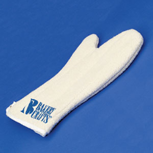 Terry Cloth Oven Mitt Glove Size: 17" Long, heavyweight lined, terry mitt protects hands and forearms. Tight knit, high loop pile terry cloth lasts longer, even after repeated laundering. Item: BC-OP-ML Category: Cake Decorating > Oven Mitts |