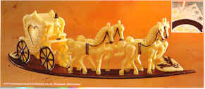 | Can be piped out of chocolate, in any color combination desired or made with clear or opaque boiled sugar. Wedding Carriage is 4" high and 13" long when assembled. Comes complete with detailed instructions for use with either chocolate or sugar. |