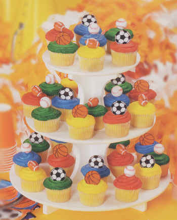 Perfect for the Winning Team What a terrific way to celebrate a team victory! Cupcakes iced with team colors and sporty picks and rings will really make the party! |
